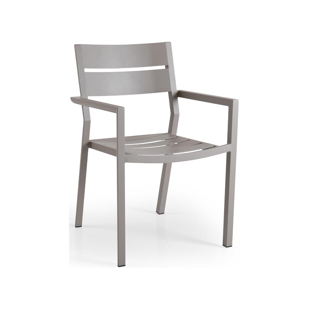 Delia karmstol i beige mattlackad aluminium. En praktisk stapelstol från Brafab.