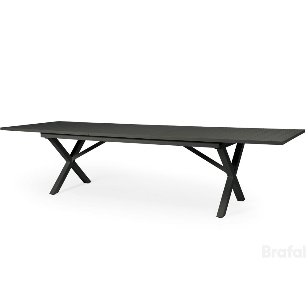 Hillmond matbord förslängs enkelt med syncronutrag. Iläggsskivan på 70cm förvaras under bordet när det inte används. Finns även i mattlackad vit aluminium.