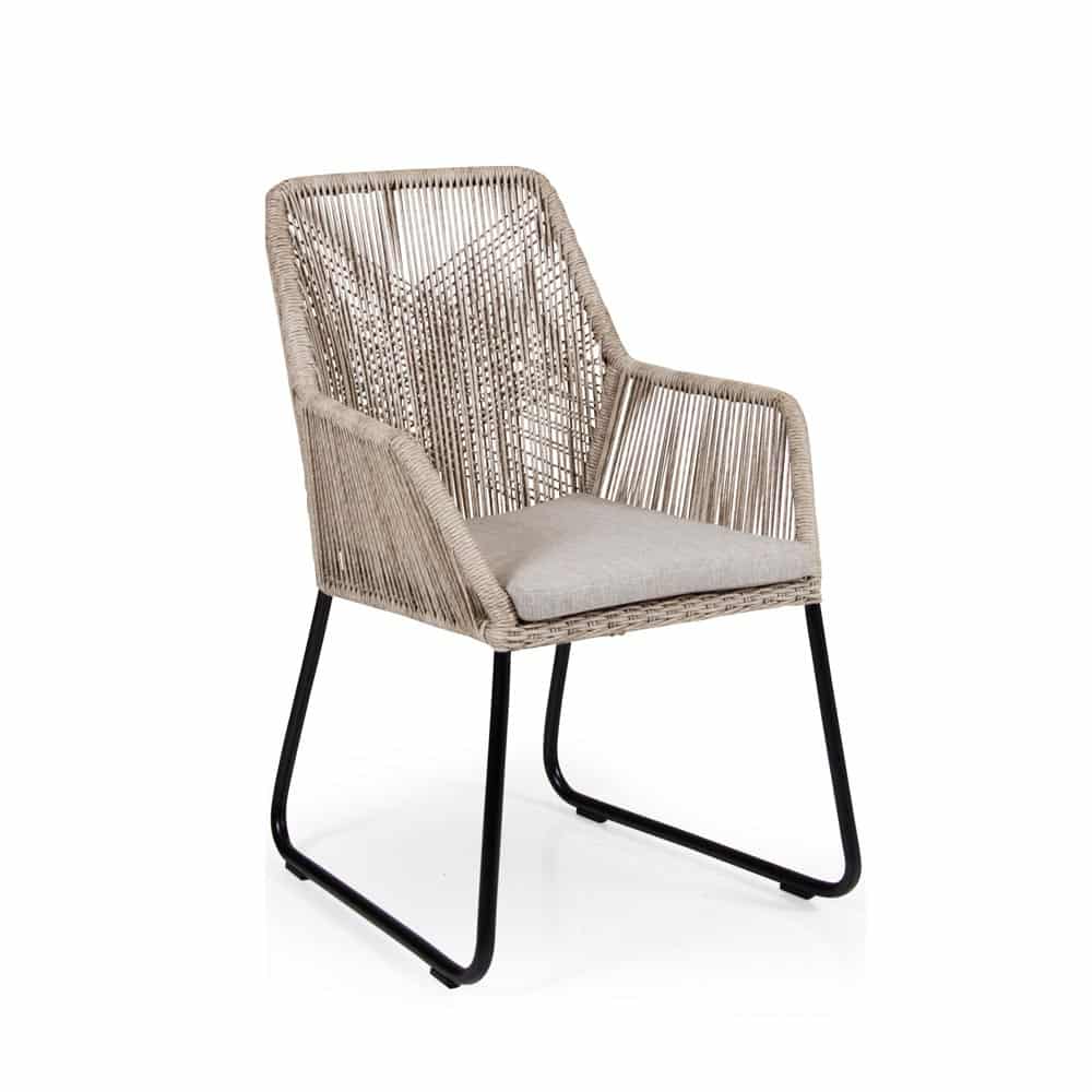 Midway karmstol i twistad beige konstrotting från Brafab. En bekväm stol med mjuka moderna former som snyggt kombineras med olika typer av bord. Till stolen följer dyna i olefintyg.