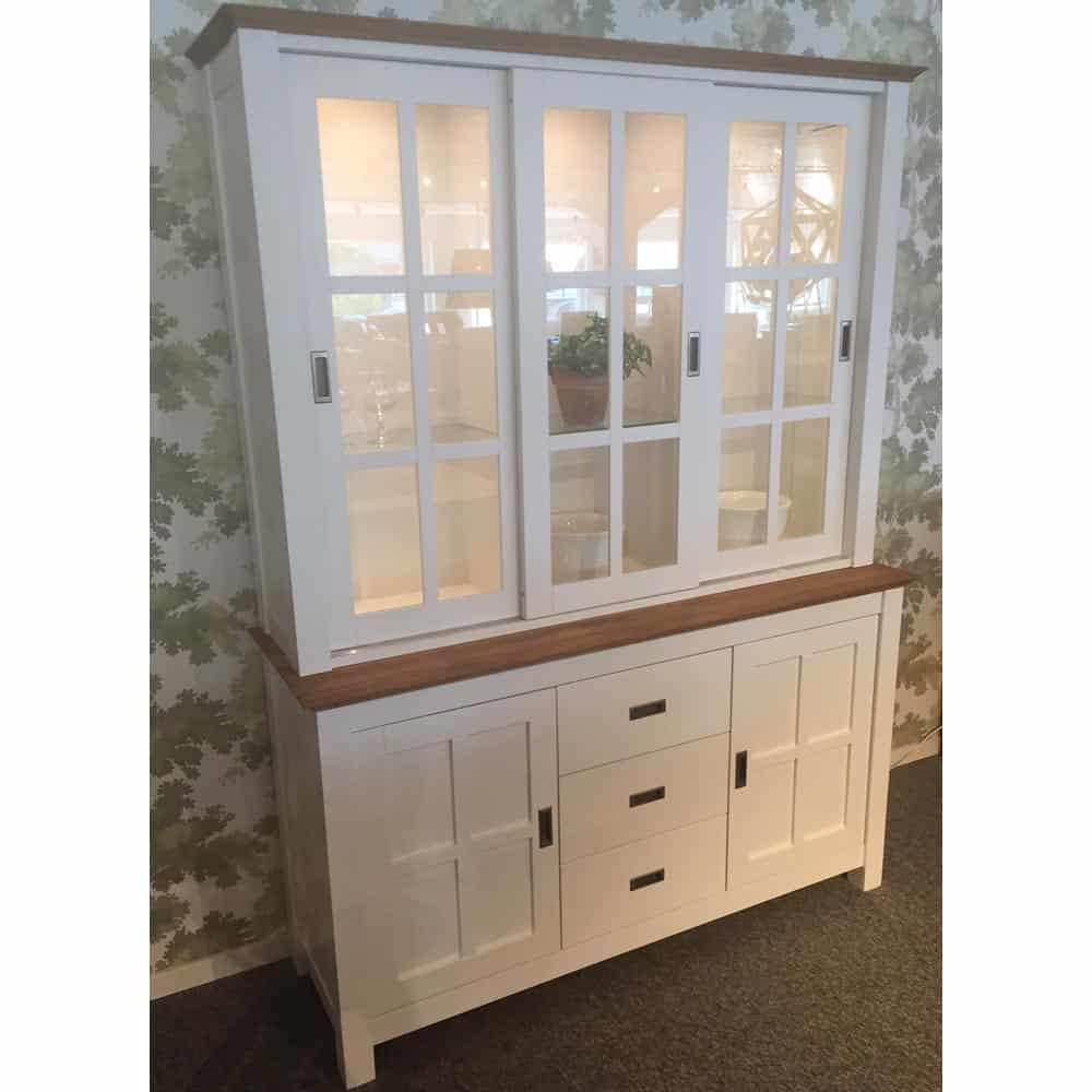 Bordeaux skänkvitrin 145 ingår i en produktserie och finns även att köpa med olika betsfärger och ytbehandlingar samt helt i massiv oljad vildek.
