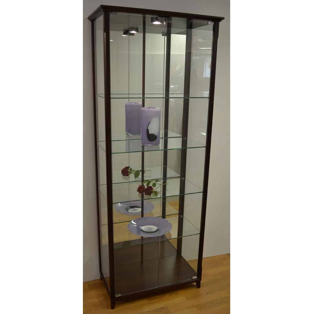 Torino 2-dörrars vitrinskåp i svartbetsad ek från Mjölkalånga Träindustri. Ett svensktillverkat skåp i elegant och stilren design. Spegelglas i ryggen och vanligt glas i sidor och dörr ger en mycket fin exponering av dina kära ägodelar! Led-belysning till skåpet ingår.